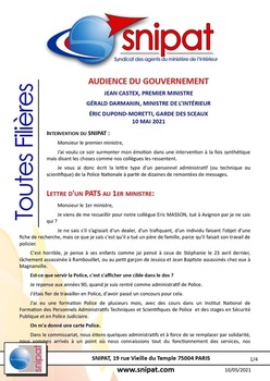 Intervention de Georges KNECHT, secrétaire général du SNIPAT, lors de l'audience de gouvernement du 10 mai 2021 en présence de Jean CASTEX, Gérald DARMANIN et Eric DUPOND-MORETTI.