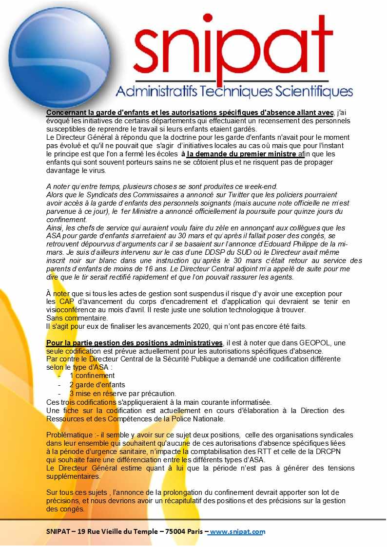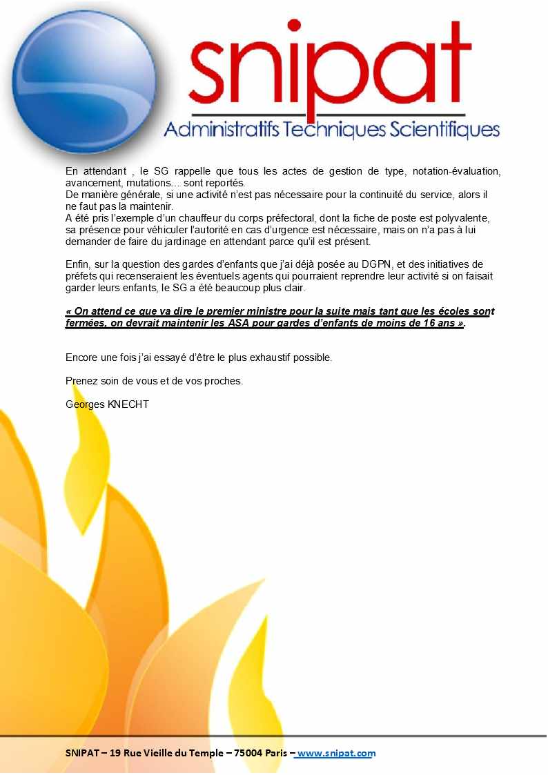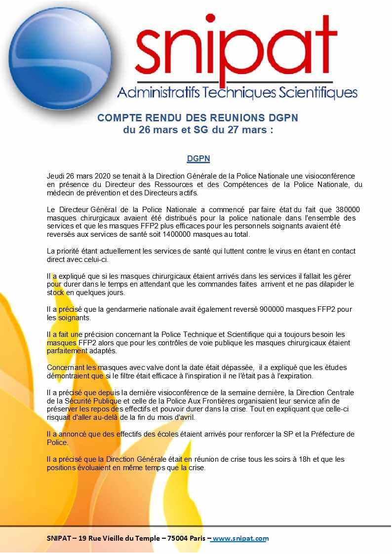 Vous trouverez infra le compte-rendu des réunions DGPN du 26 mars 2020 et Secrétariat Général du 27 mars 2020.