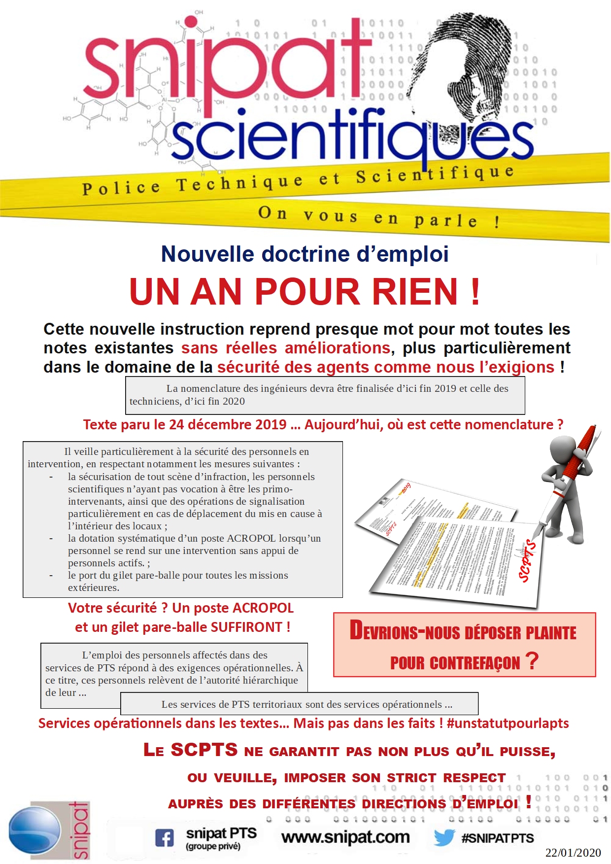 Nous devrions avoir davantage d'informations à vous apporter dans les prochains jours mais dans l'attente, veuillez trouver ci-joint un tract concernant la doctrine d'emploi diffusé par le SCPTS.