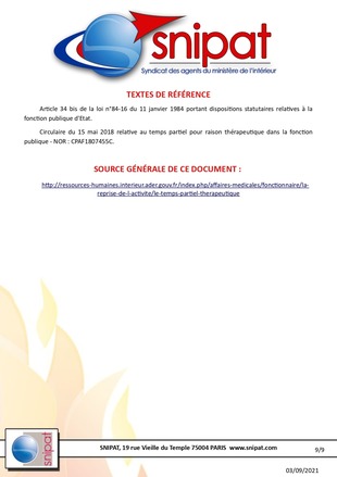 La règlementation relative au temps partiel pour raison thérapeutique a évolué avec la parution du décret n° 2021-997 du 28 juillet 2021 relatif au temps partiel pour raison thérapeutique dans la fonction publique de l'état.