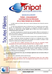 Le 22 février aura lieu la seconde table ronde des " Beauvau de la sécurité" avec pour thème l'encadrement. Ce sujet étant extrêmement vaste, nous jugeons qu'il mérite davantage d'attention et qu'une demi-journée ne pourra suffire. Vous trouverez donc ci-joints nos contributions adressés au coordonnateur des "Beauvau de la sécurité" ainsi qu'au cabinet du ministre de l'intérieur.