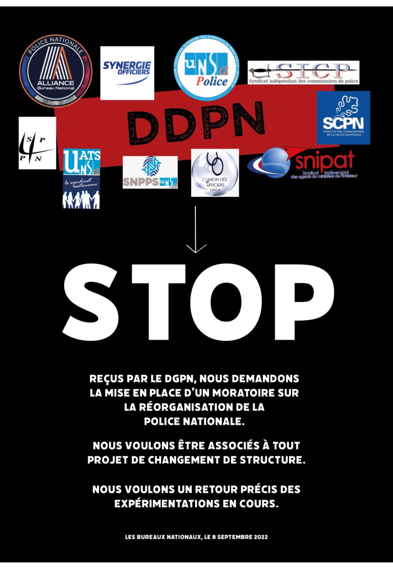 DDPN : nous demandons la mise en place d'un moratoire sur la réorganisation de la police nationale et demandons à être pleinement, et en transparence, associés à ce projet.
