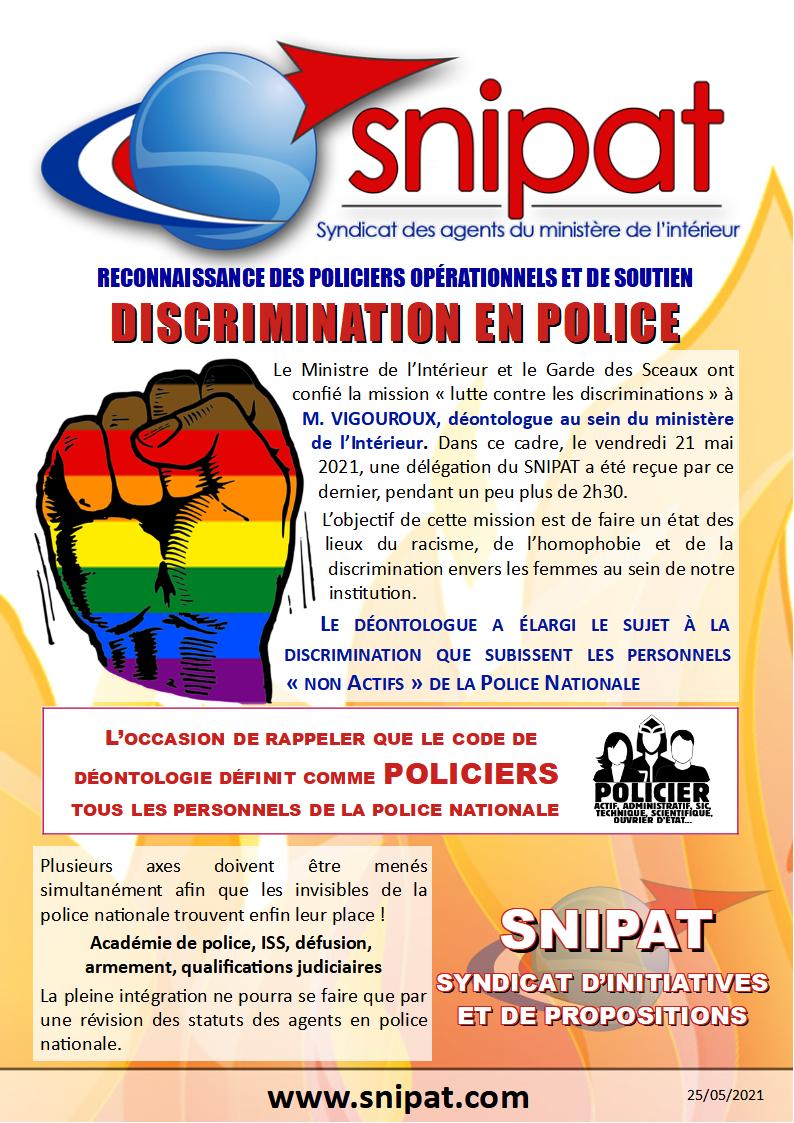 Lutte contre la discrimination des policiers opérationnels et de soutien