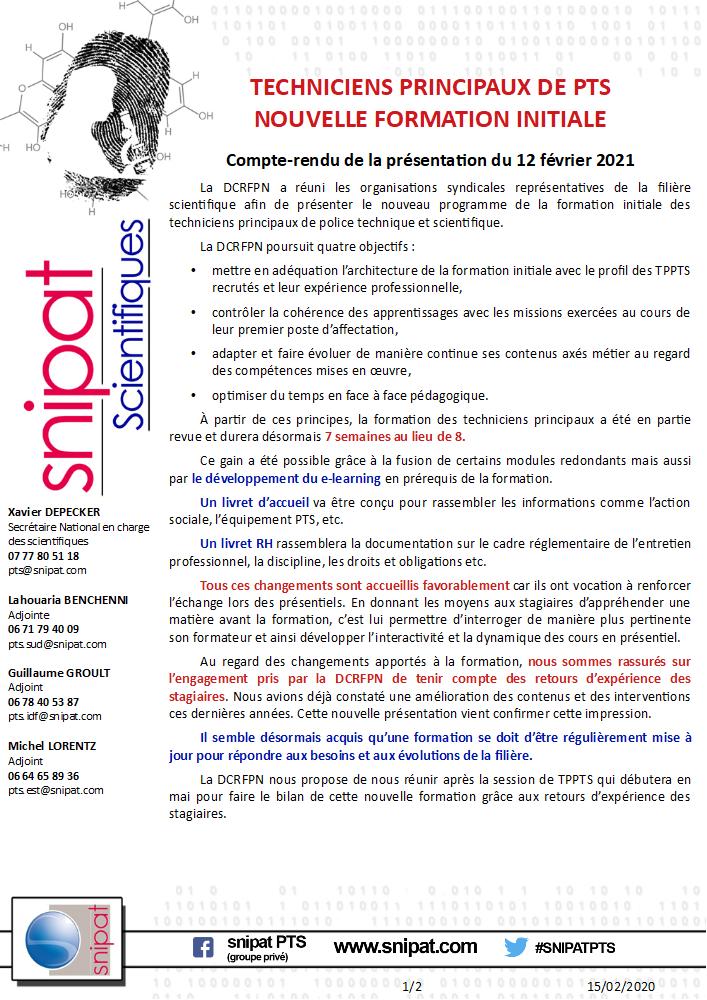 Présentation de la nouvelle formation initiale des techniciens principaux de police technique et scientifique