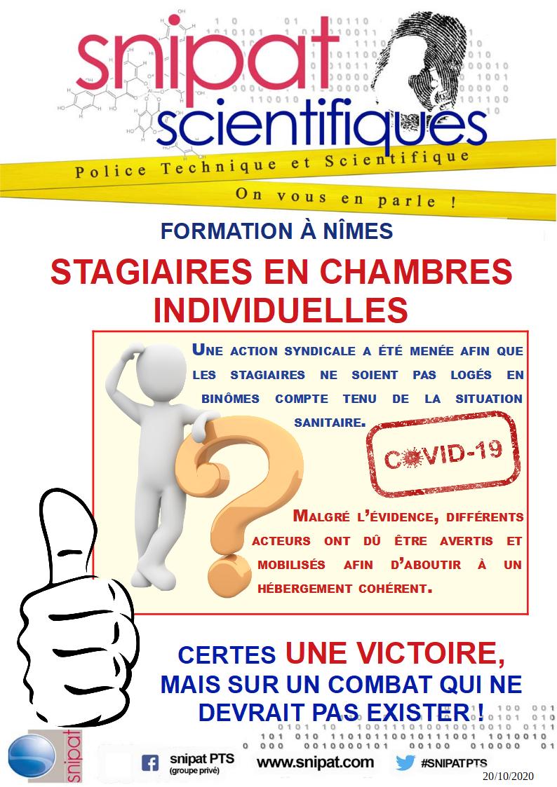 Une action syndicale a été menée afin que les stagiaires ne soient pas logés en binômes compte tenu de la situation sanitaire.