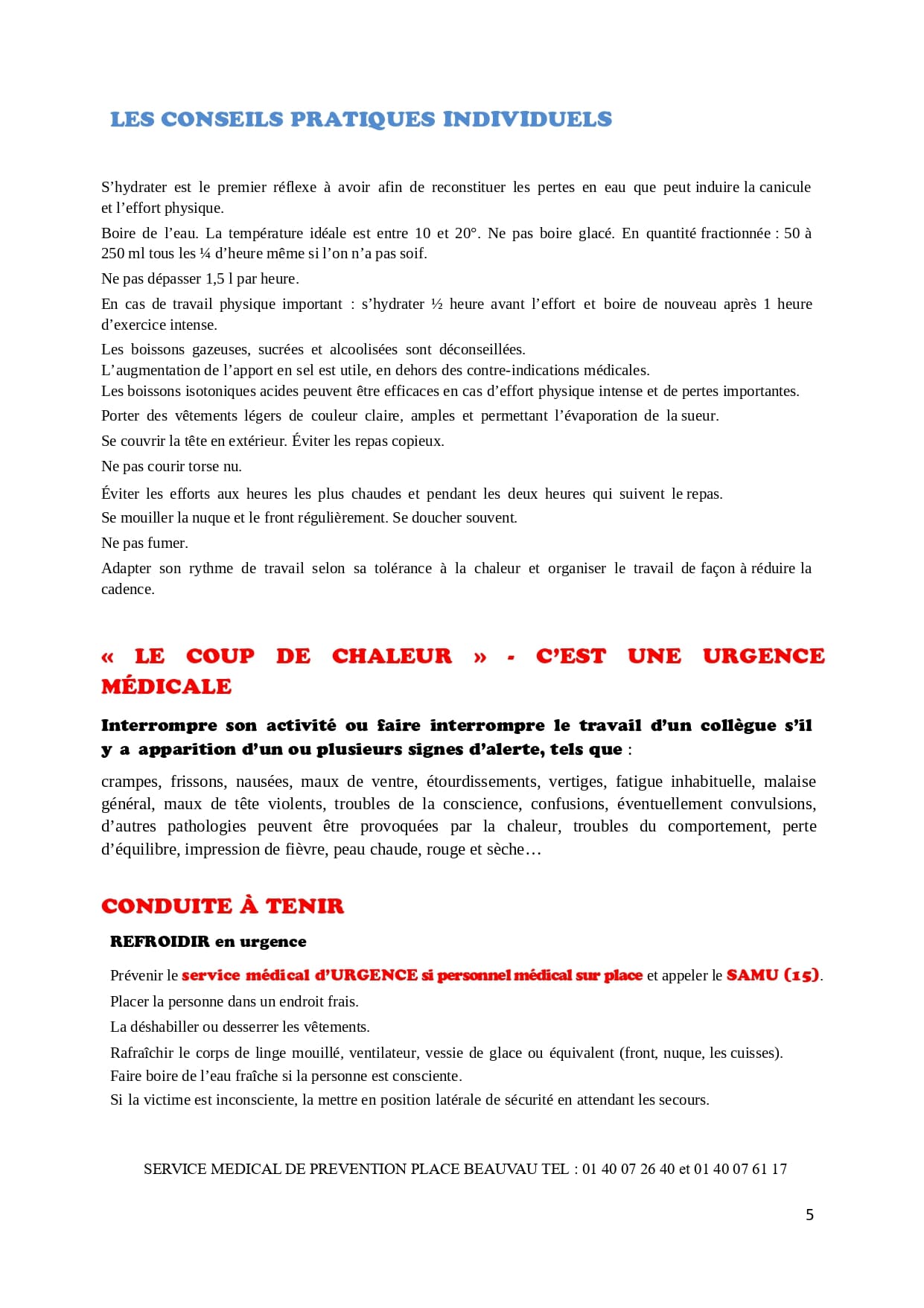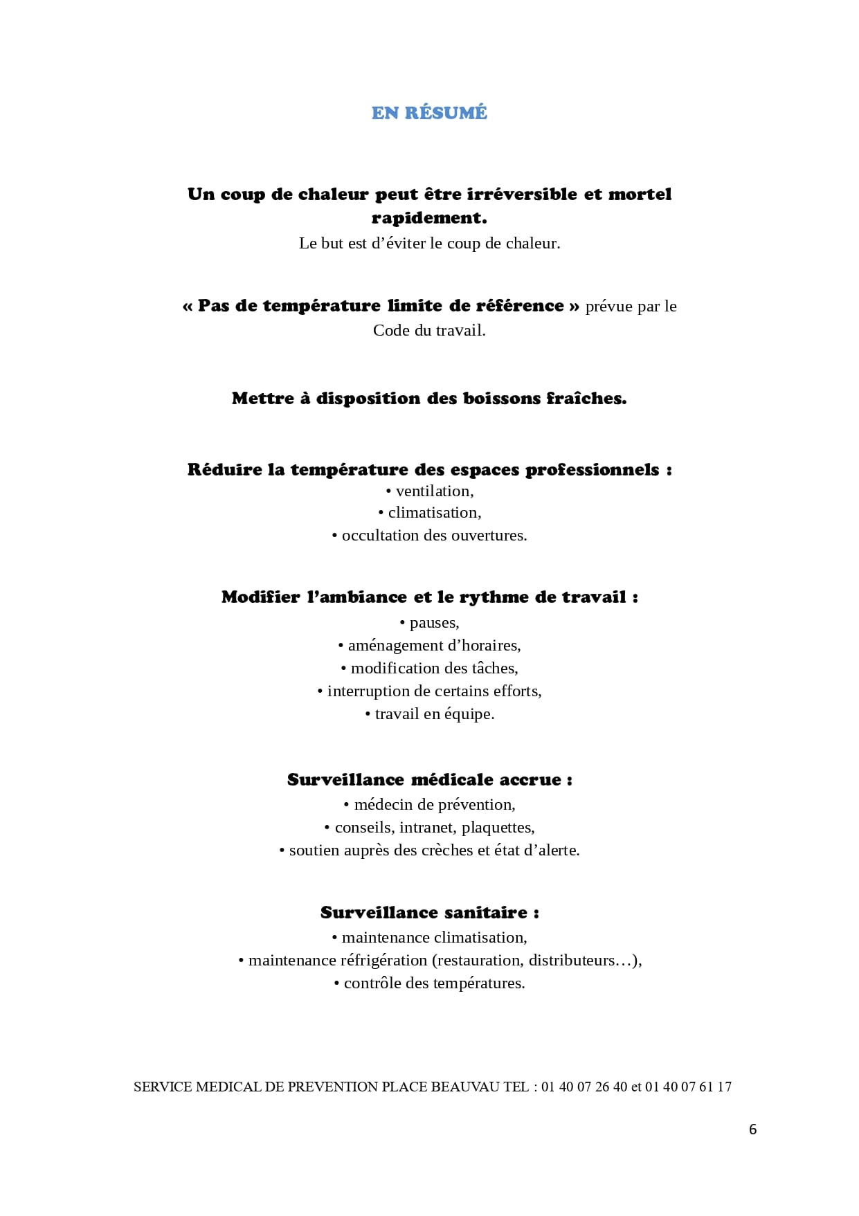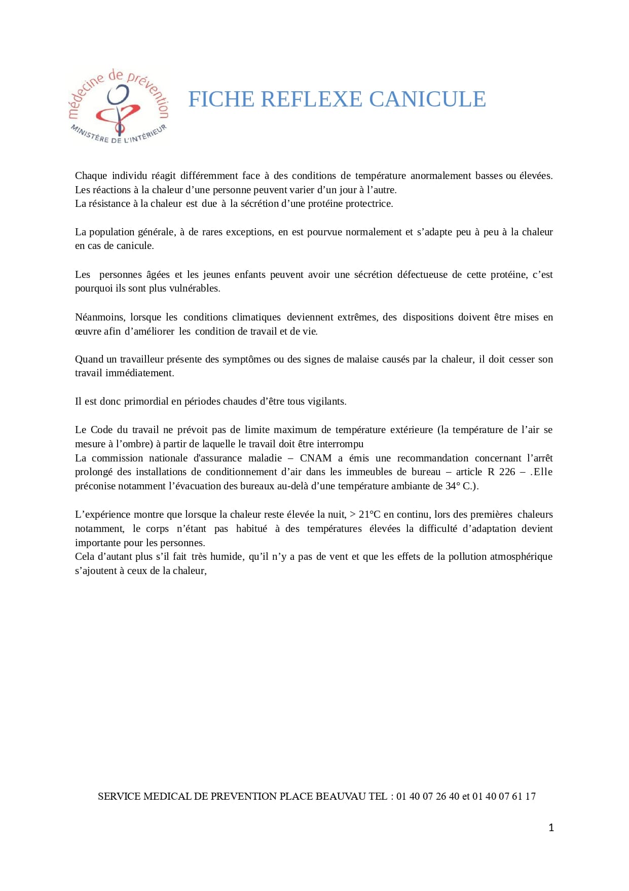 fiche réflexe "Canicule du service de médecine de prévention du ministère de l'intérieur".