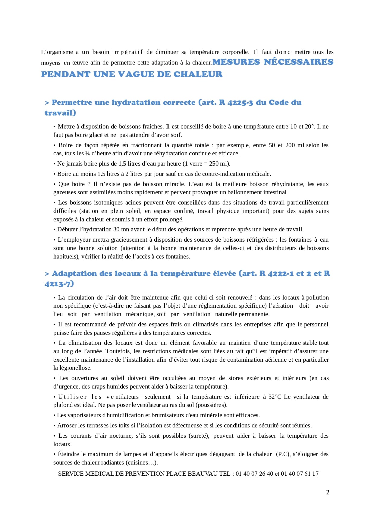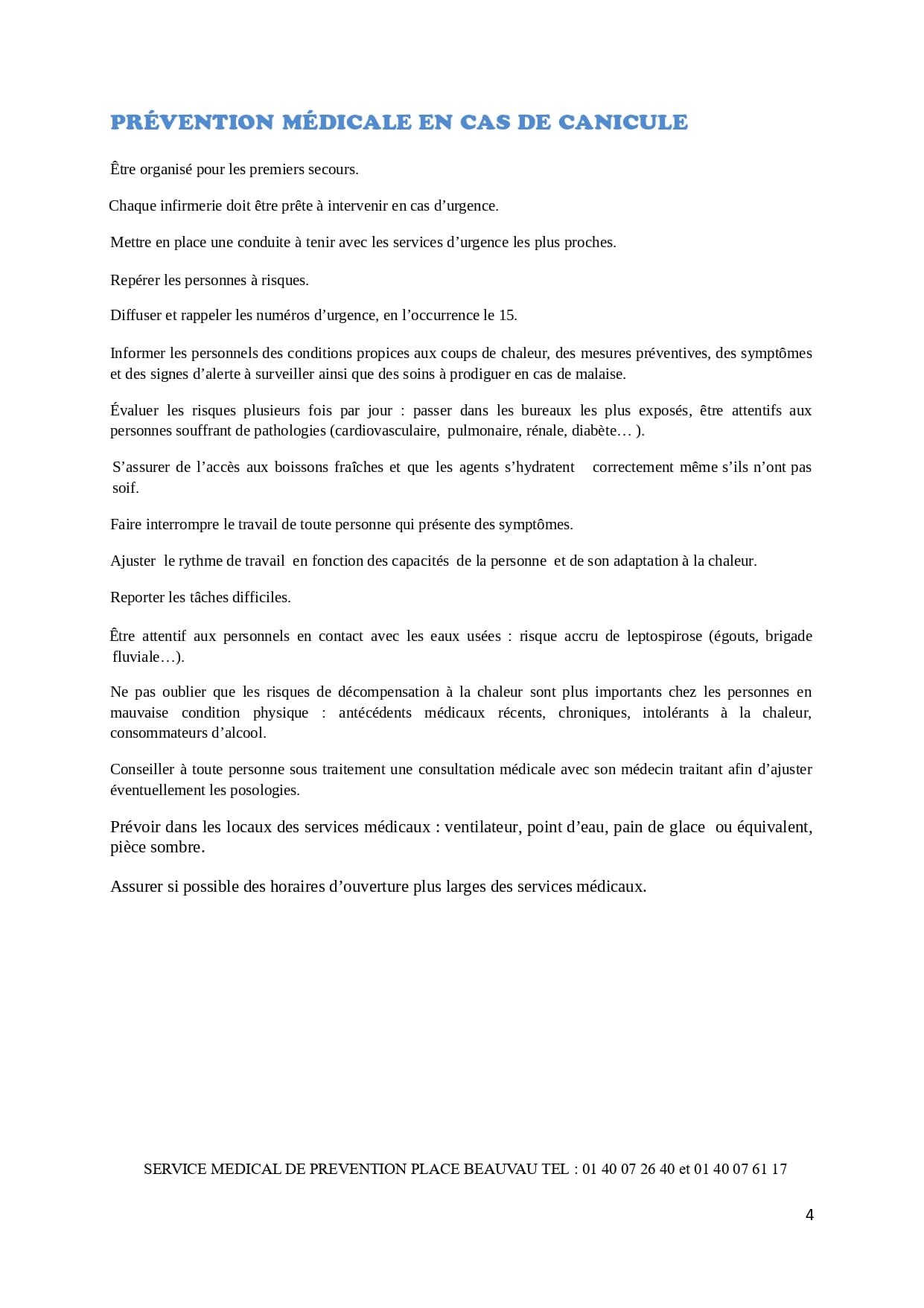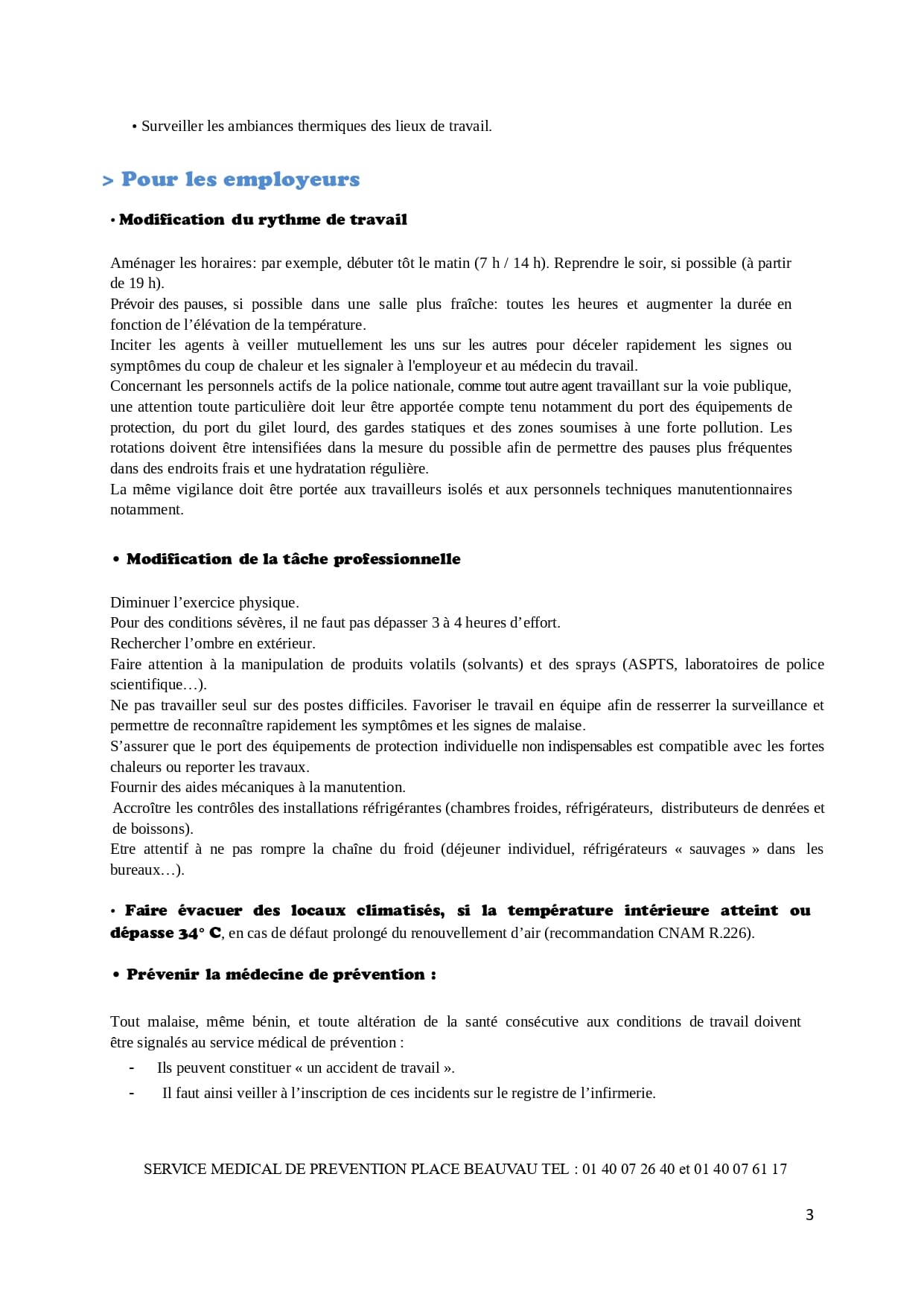 fiche réflexe "Canicule du service de médecine de prévention du ministère de l'intérieur".