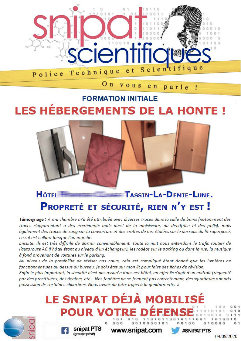 Des stagiaires en formation initiale ASPTS ainsi qu'en formation ITT sont logés dans un hôtel ne respectant pas des règles d'hygiènes et sécurités.