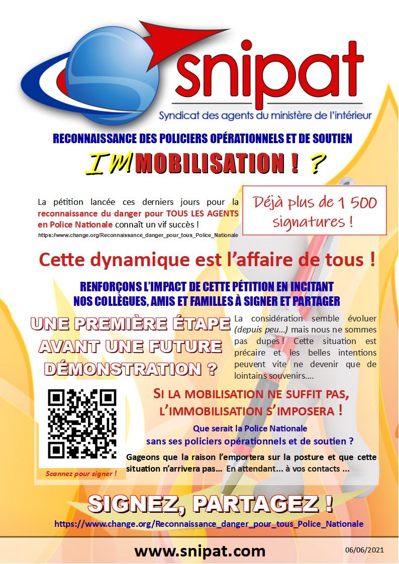 La pétition lancée ces derniers jours pour la reconnaissance du danger pour TOUS LES AGENTS en Police Nationale connaît un vif succès !