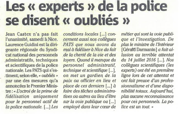 Intervention de Laurence GUIDINI dans Nice Matin à propos des mesures dont les PATS sont exclus !