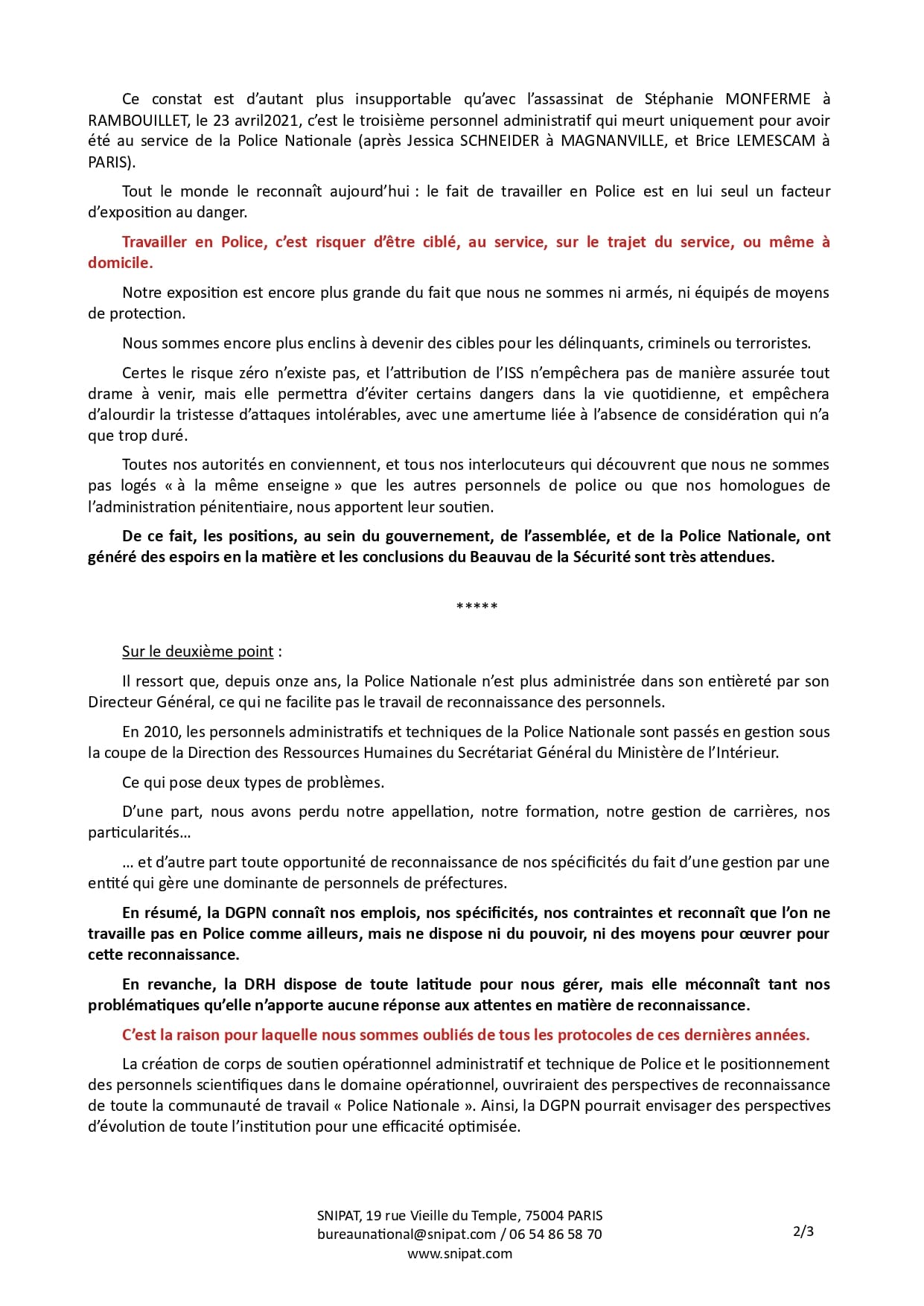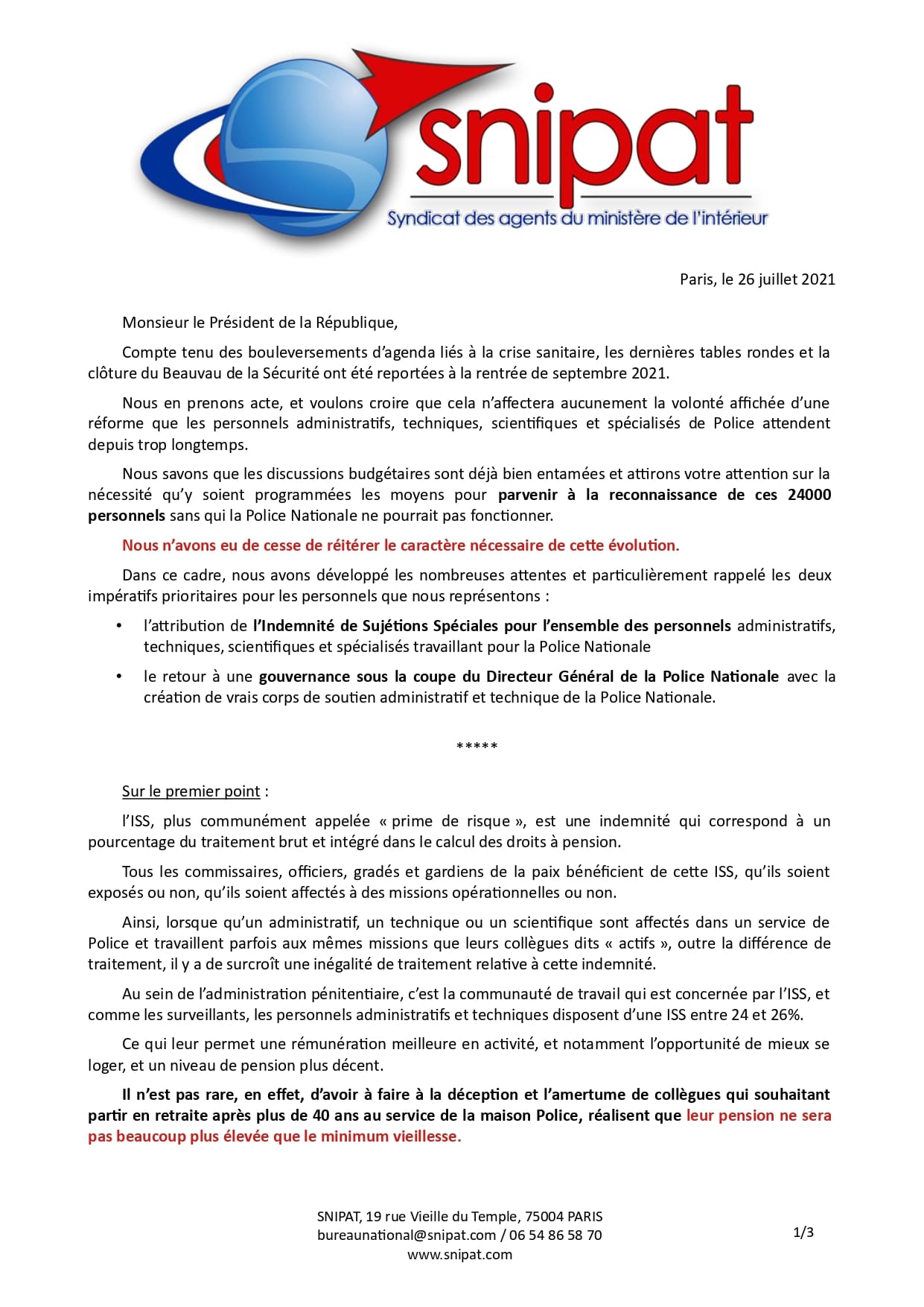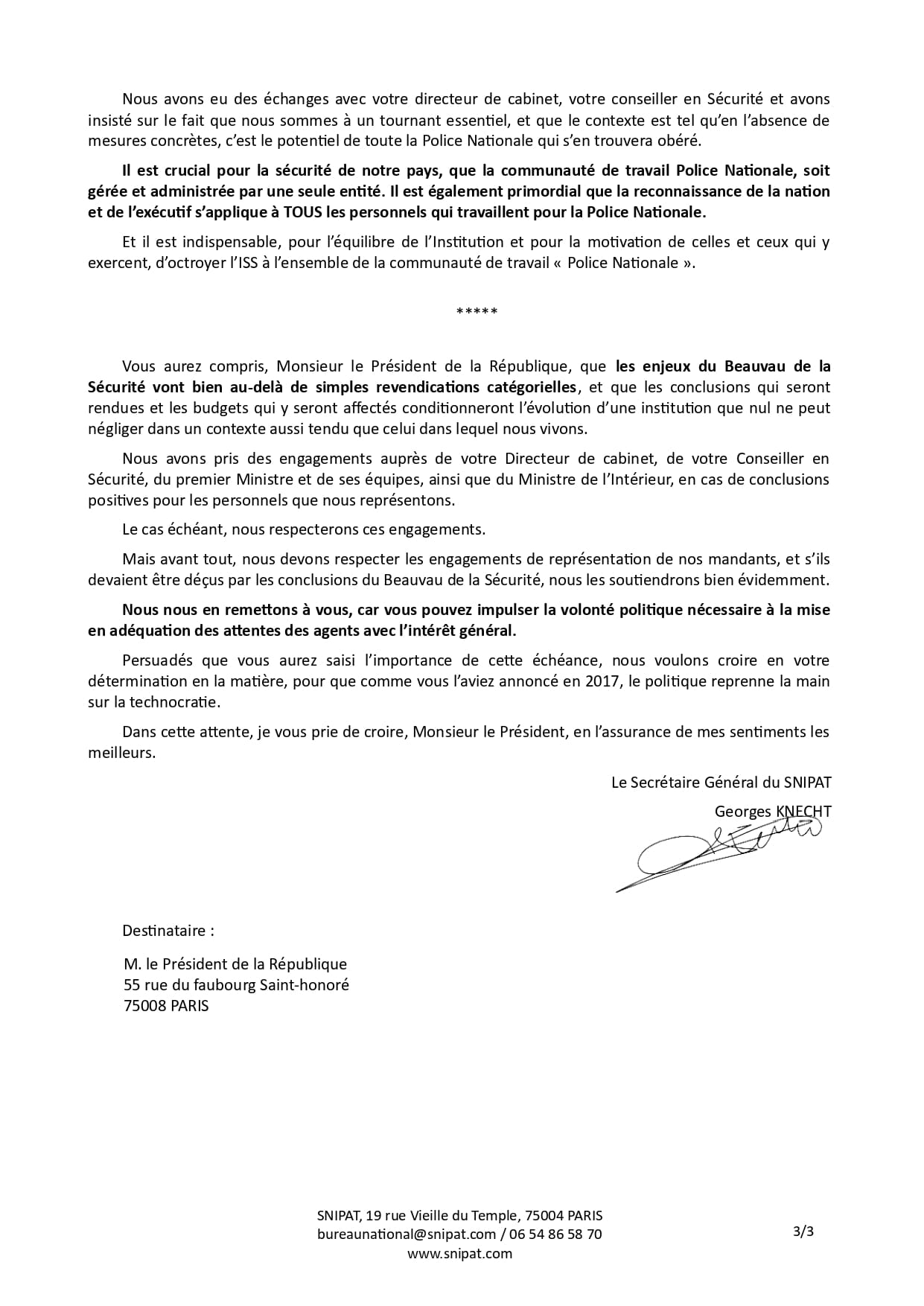 Sans attendre l'issue du Beauvau de la sécurité, le SNIPAT saisit le président de la République.