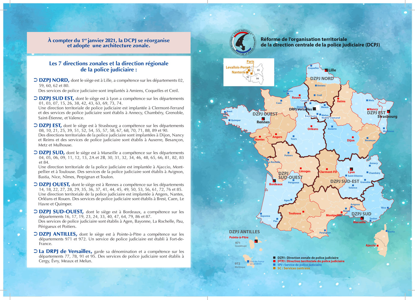 Vous trouverez ci-joint une plaquette de communication sur la nouvelle cartographie de l'organisation territoriale de la DCPJ.