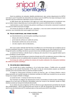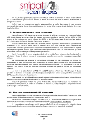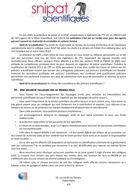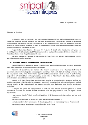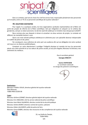 Courrier adressé le 25 janvier au DGPN faisant office de bilan des réformes actuelles de la filière scientifique et du ressenti des agents sur ces changements.