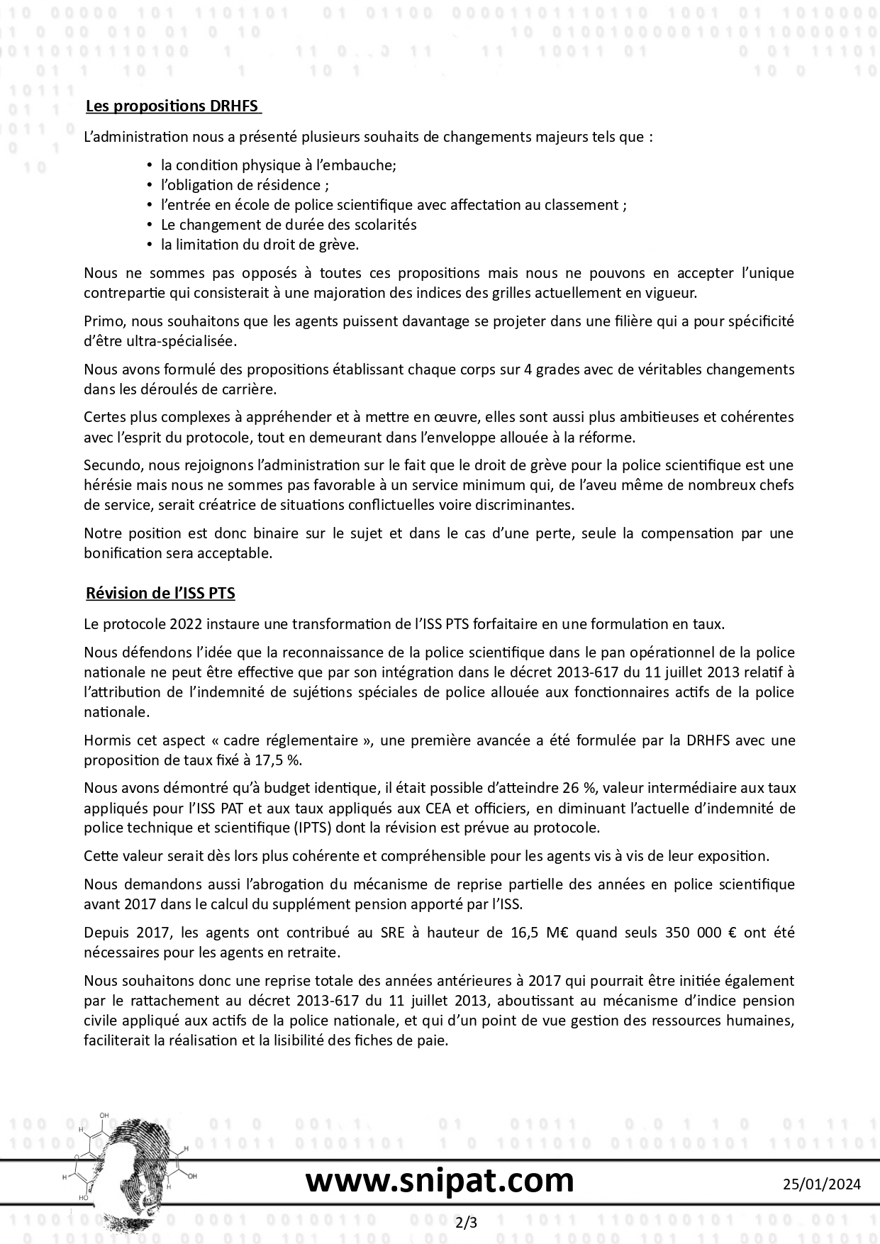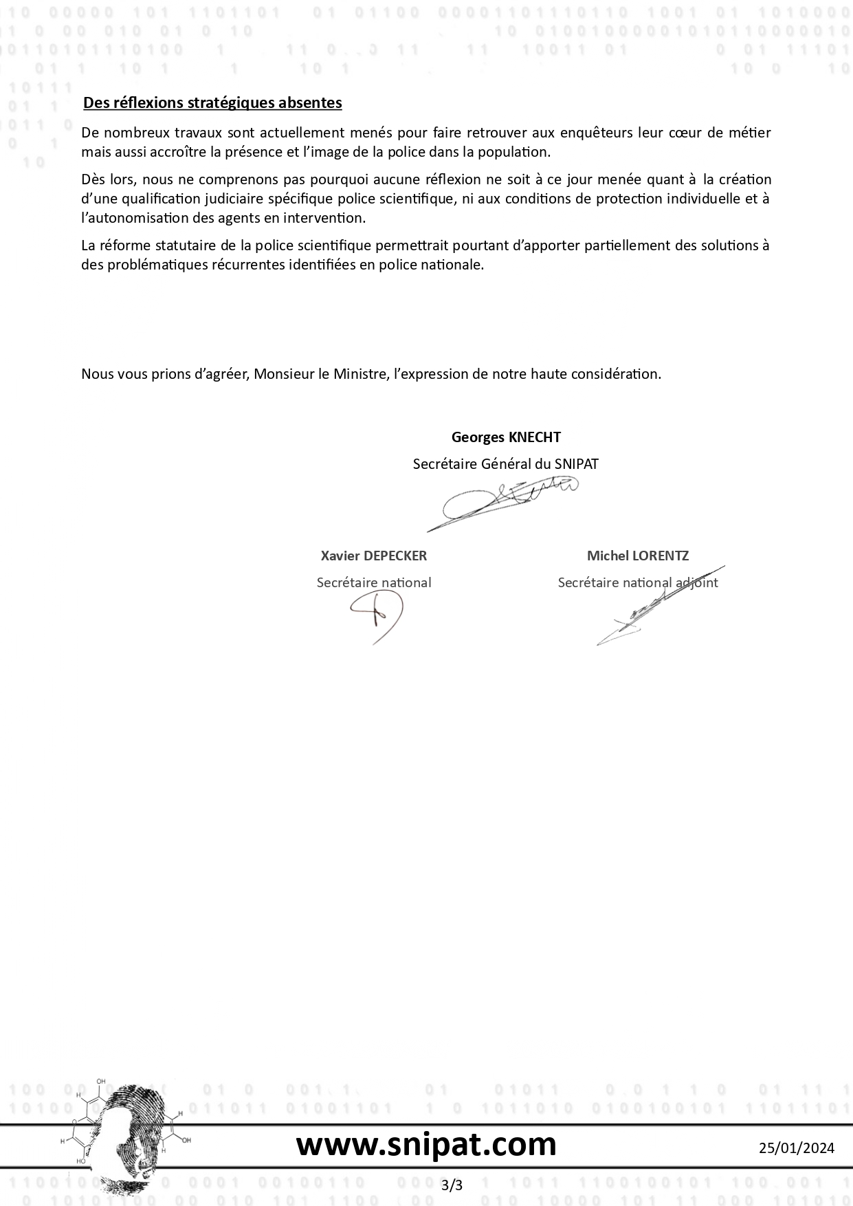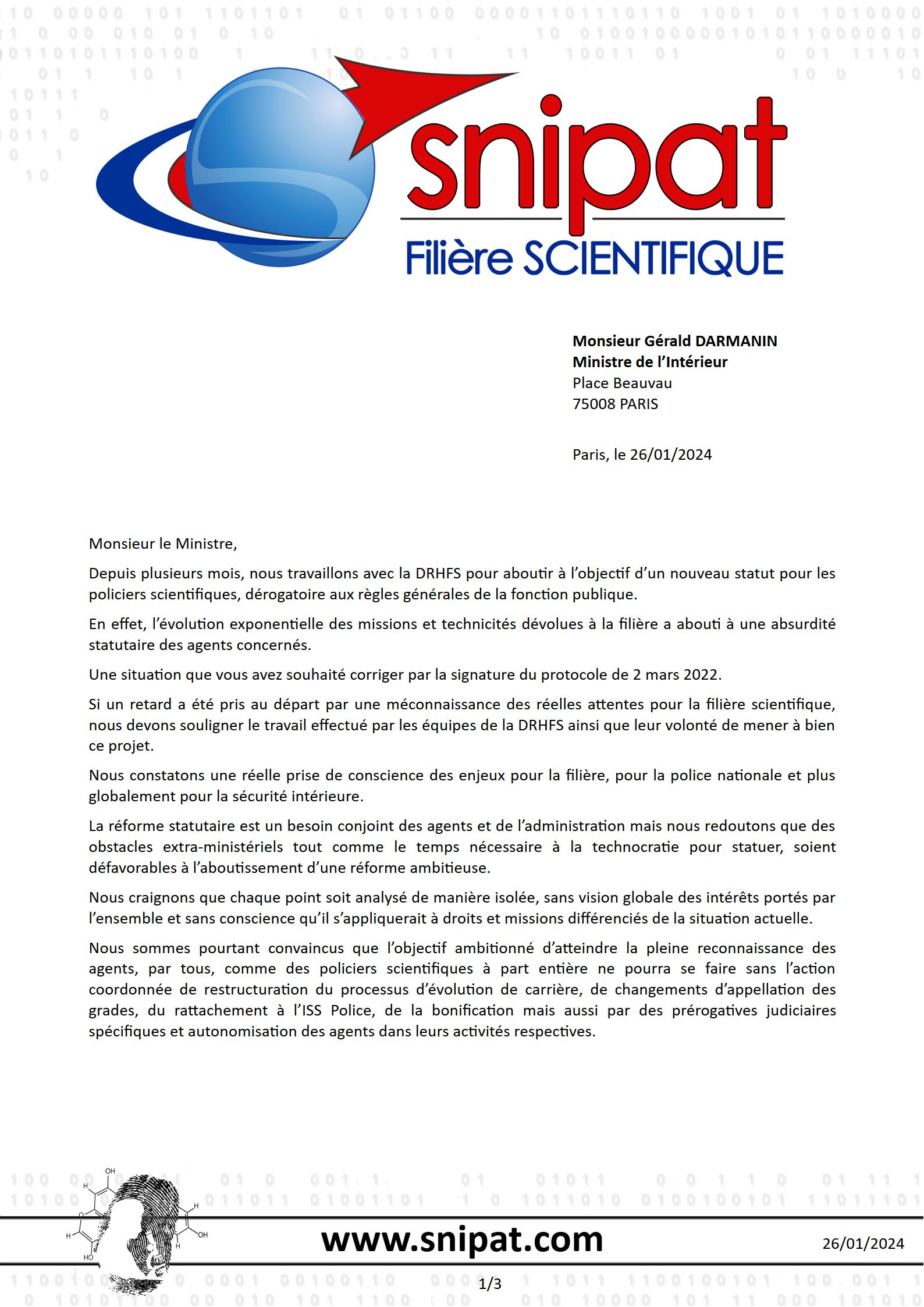 Courrier remis au ministre à l'occasion d'un entretien avec le SNIPAT ce 26 janvier 2024.