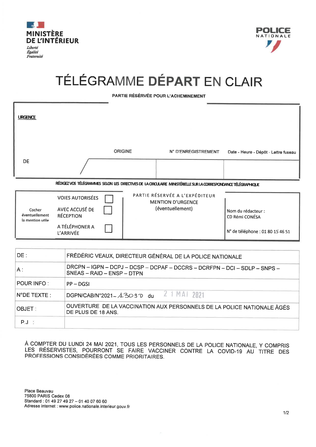 NOTE DGPN sur la vaccination des agents PN | pdf 84.4kb