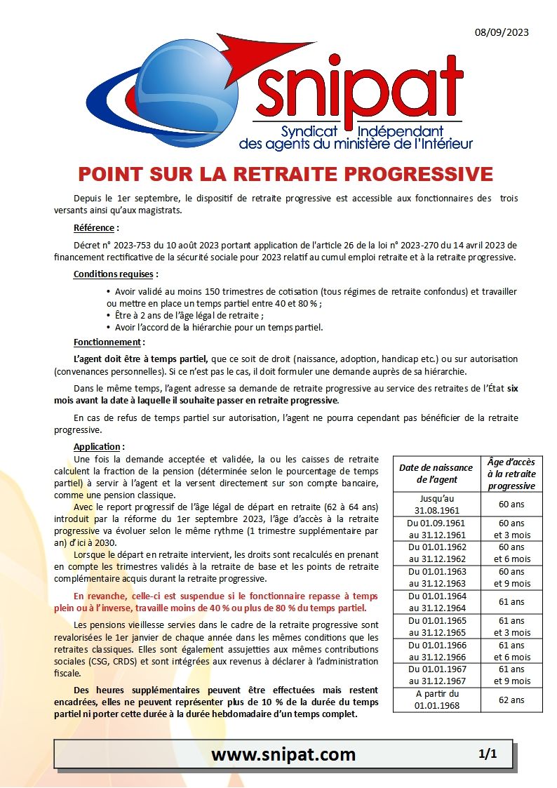 Information sur la retraite progressive :